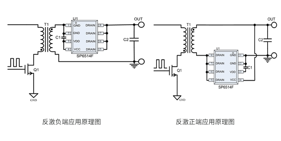 SP6514FA是一顆高性能的開關電源次級側同步整流控制電路。在低壓大電流開關電源應用中,輕松滿足6級能效,是理想的超低導通壓降整流器件的解決方案。芯片可支持高達150KHz的開關頻率應用,并且支持CCM / QR / DCM等開關電源工作模式應用,其極低導通壓降產生的損耗遠小于肖特基二極管的導通損耗,極大提高了系統的轉換效率,大幅降低了整流器件的溫度。